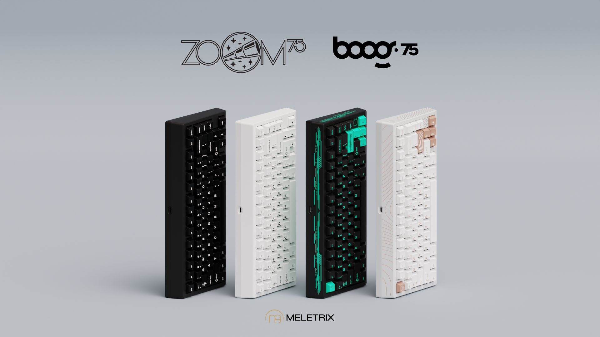 BOOG75는 인기 있는 ZOOM75의 자기 스위치 변형입니다. 이제 Shockwave와 Induction Coil이 BOOG75의 기본 색상인 4가지 색상의 사전 구축 키보드를 제공합니다. 또한 이제 HE 모듈을 선택할 수 있는 흰색과 검은색 ZOOM75(유선)를 제공합니다.