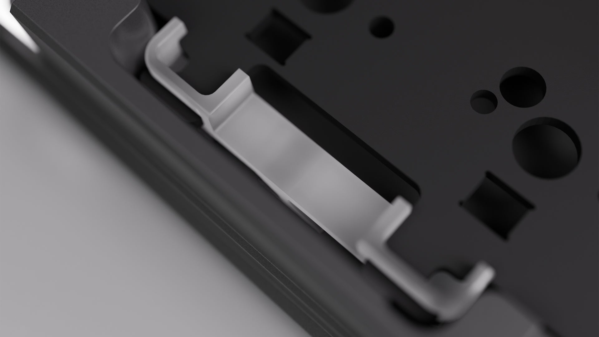 우리는 더 쉬운 조립을 위해 리본 케이블을 포고 핀으로 교체했습니다. 또한, 포고 핀 주위에 범퍼를 추가하여 손상을 줄였습니다.