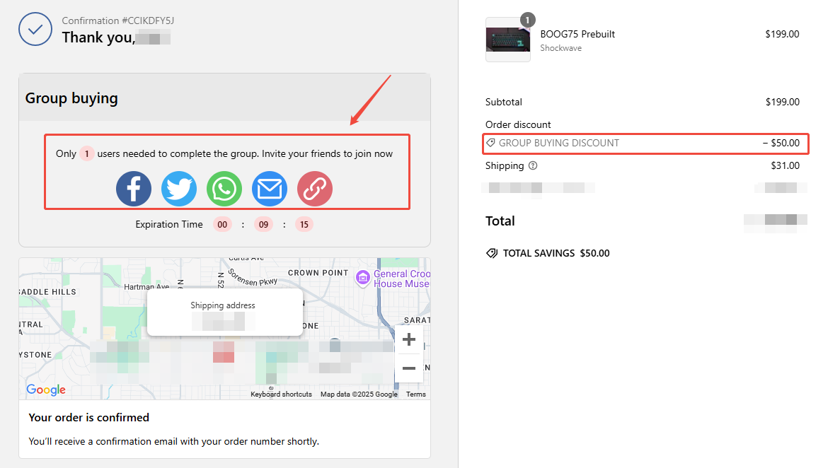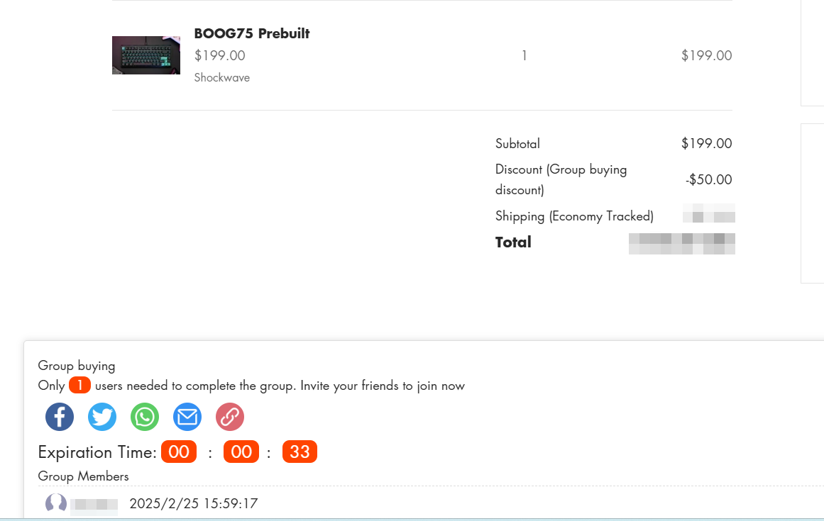 - Besides viewing the group buy information on the thank-you page, users can also check more detailed group buy information on the order status page.