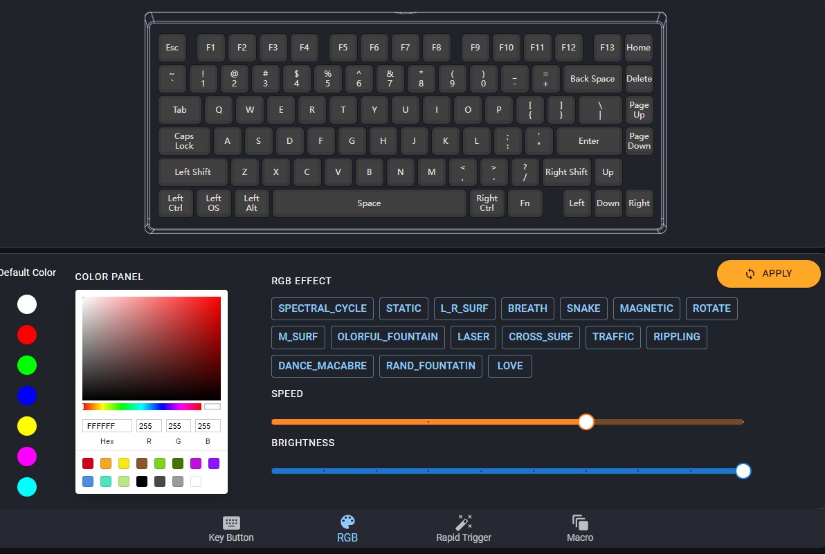 Therefore, owing to the unique structure of magnetic switches, with the use of our driver software, you have the freedom to adjust sensitivity according to your preferences. This feature enhances your customized gaming keyboard experience, providing you with the ability to fine-tune sensitivity levels and elevate your gaming performance.