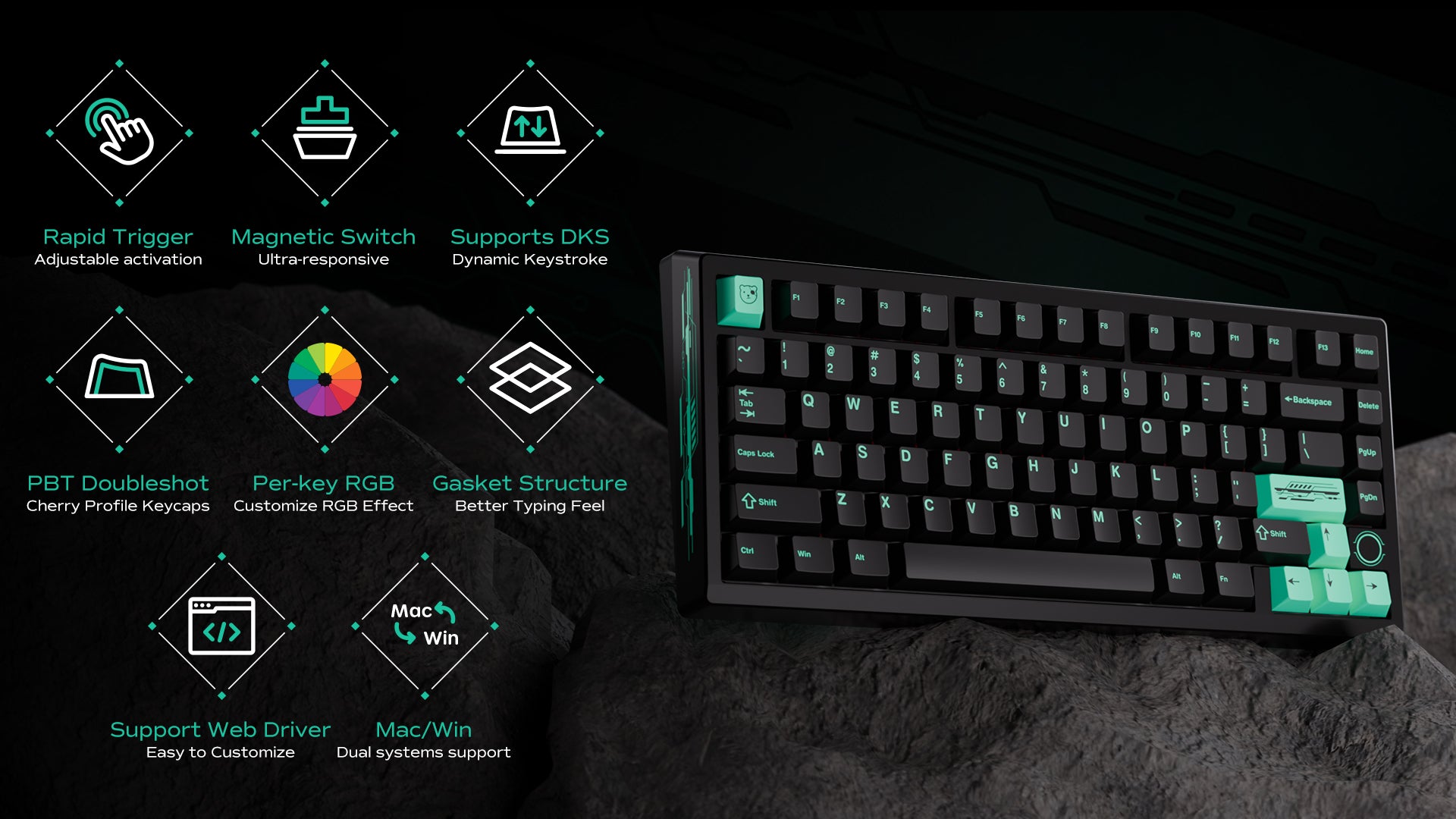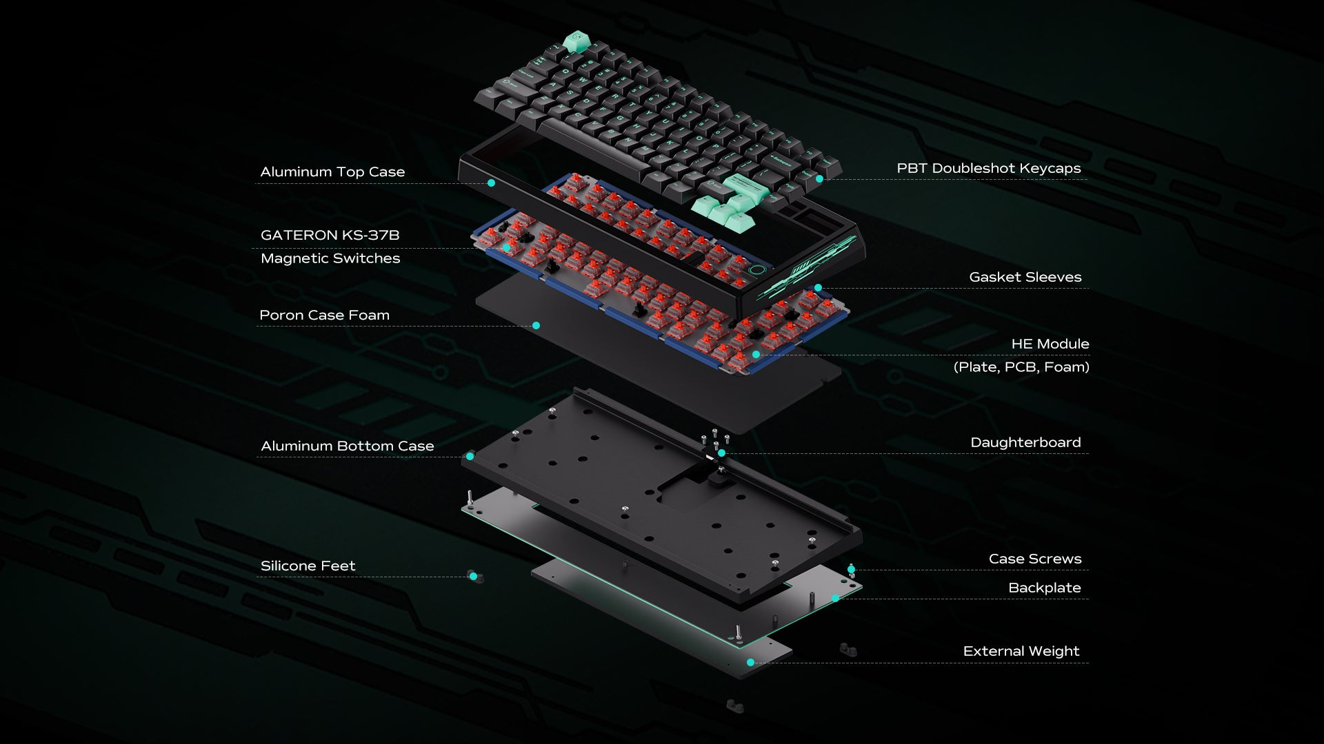 - Switches Type: Gateron KS37B, compatible with Gateron KS37, GATERON Magnetic FOX Switch, GATERON Dual-rail Magnetic Jade Mini E Switch